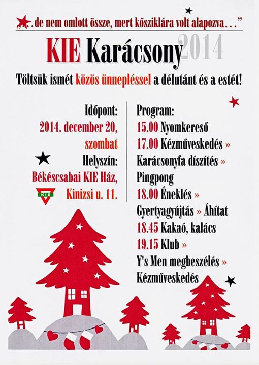 2014. december 20-án, szombaton ismét KIE Karácsony. Akár már 15 órától!