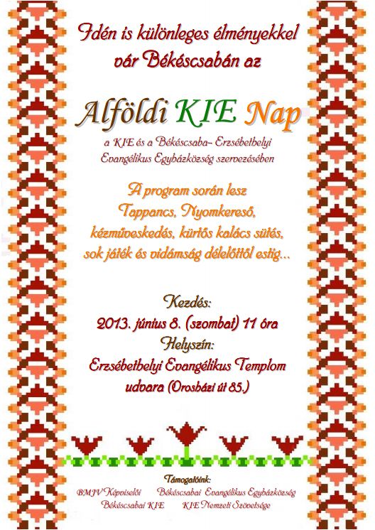 Ezen a szombaton 11-től leszünk együtt, a szokásosnak tekinthető helyszínen az Erzsébethelyi (jaminai) Evangélikus Templom (Orosházi út 85.) udvarán.
